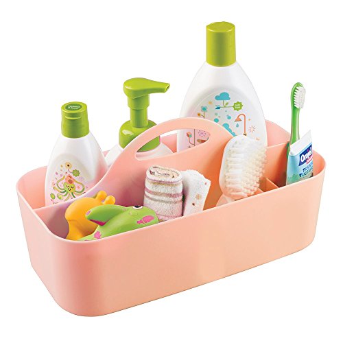 mDesign Baby Nursery Tote Caddy, for Wipes, Binkies, Medicine, Lotion - Medium, Coral [並行輸入品]
