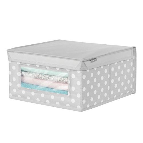 mDesignソフトスタッカブルファブリッククローゼットオーガナイザーストレージホルダーボックス – クリアウィンドウ、接続されたヒンジ蓋、子の/ベビールーム、保育園、Playroom – ポルカドットパターン – ミディアム、ライトグレーwithホワイトドット