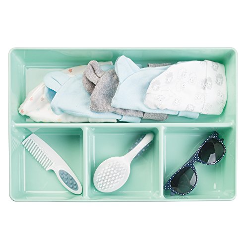 - mDesign Baby Nursery Dresser Drawer & Closet Organizer Tray for Bibs, Onesies, Rattles - 4 Sections, Light Mint