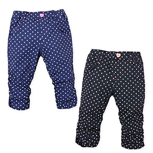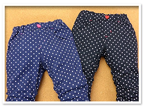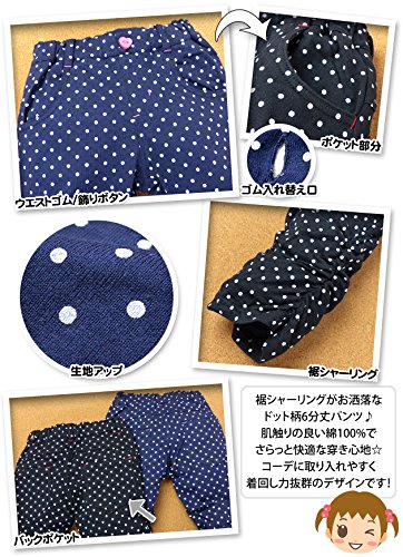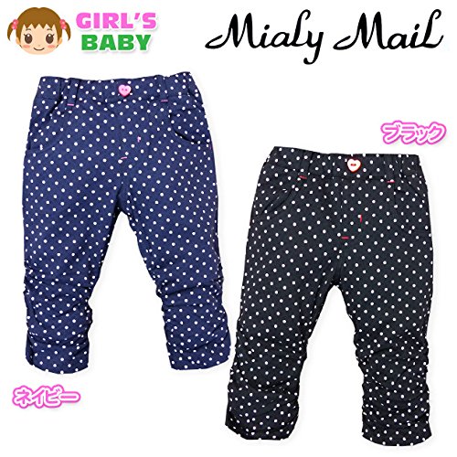 ベビー服 女の子 6分丈 パンツ ボトム Mialy Mail 綿100% ドット柄 裾シャーリング ウエストゴム 女児 ベビー (1.ネイビー/95cm)