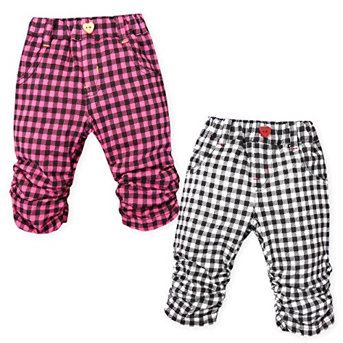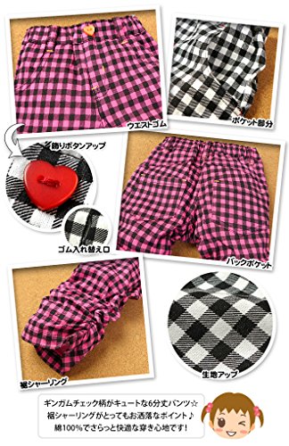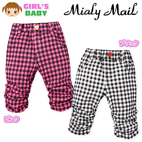 ベビー服 女の子 6分丈 パンツ ボトム Mialy Mail 綿100% ギンガムチェック 裾シャーリング ウエストゴム 女児 ベビー (1.ピンク/95cm)