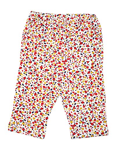 天竺素材、Tシャツ素材の薄手の柔らか素材の6分丈パンツです。柔らか素材で動きやすく履きやすい。スパッツやレギンス代わりにも履けます!赤や黄色の小花柄、オレンジとブルー系の小花柄、グレーじにドットとハートの総柄、コン地にドットとハートの総柄4色展開です。