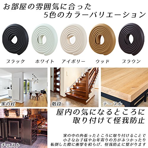 Mikotox ぶつけても痛くない コーナーガード 2m×2本セット 両面テープ付き 簡単取り付け (5 ブラウン)