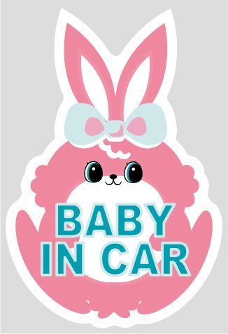 BABY IN CAR (ベビーインカー)☆ウサギさん色ピンク 白ふち☆セーフティー ステッカー 車