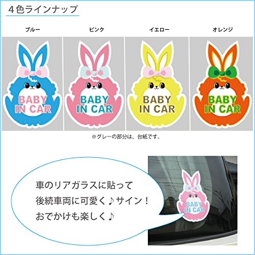 当店オリジナルステッカー 商品名 【BABY IN CAR ウサギさん】 商品イメージ とっても可愛いウサギさんのセーフティマークです 4つのカラーと、色ふち、白ふちの計8パターンをご用意しました!お車に合わせてお選び下さい。