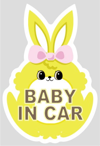 BABY IN CAR (ベビーインカー) ☆ウサギさん色イエロー 白ふち☆セーフティー ステッカー 車