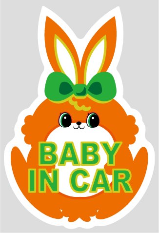 BABY IN CAR (ベビーインカー) ☆ウサギさん色オレンジ 白ふち セーフティー ステッカー 車