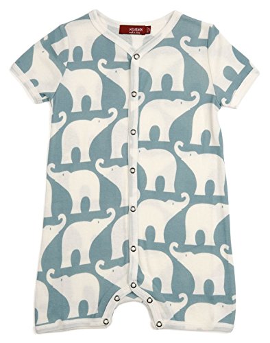 Milkbarn Organicコットン半袖Shortall "ブルー象" 12 – 18ヶ月
