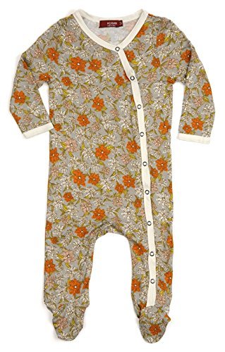 Milkbarn竹Footed Romper「グレー花柄」0 – 3 Months
