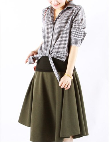 問い合わせ多数のミモレ丈フレアースカートがついに登場。ウエストの切り替えの調整で妊娠中から産後まで長くお使いいただけます。