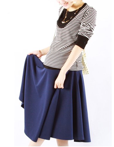 問い合わせ多数のミモレ丈フレアースカートがついに登場。ウエストの切り替えの調整で妊娠中から産後まで長くお使いいただけます。
