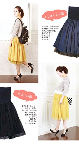 チュールレースとシワ加工されたコットン生地のリバーシブルスカート!マタニティー&産後兼用!