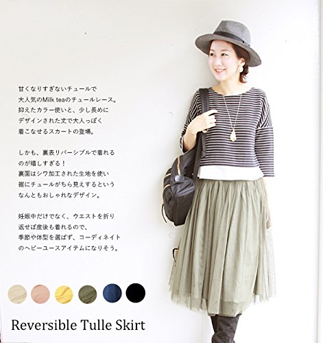 Milk tea マタニティ 授乳服 リバーシブル・チュールスカート 2Way ボトムス 産前産後 (ベージュ)