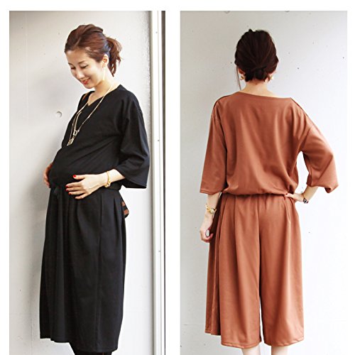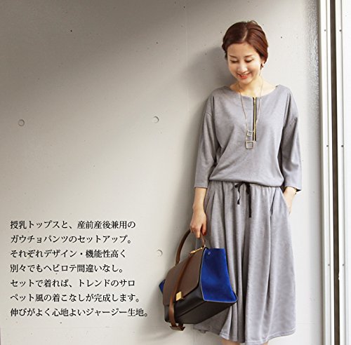 - リラックス感ある、ジャンプスーツ風のコーディネイトが完成する、授乳服トップスと産前産後兼用のガウチョパンツのセットアップ。上下別々でも使える!