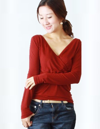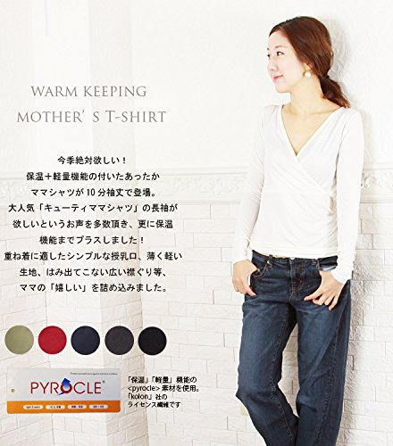 Milk tea マタニティ 授乳服 インナー あったか軽い こだわりママシャツ 10分袖 L ワイン