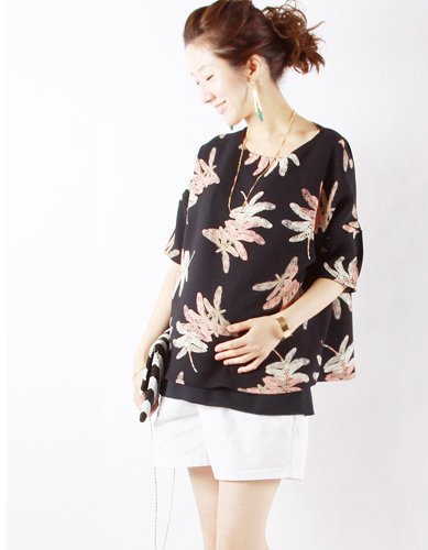 - トンボの作る、スタイリッシュで遊び心溢れる世界に魅了される、授乳服チュニック。高級感溢れる縮緬のようなジョーゼット生地とシフォンを重ね着しているようなデザイン。