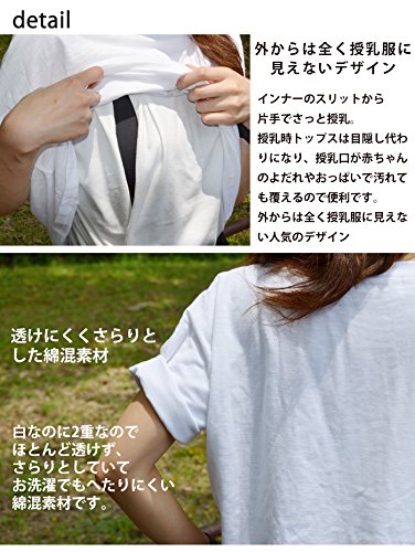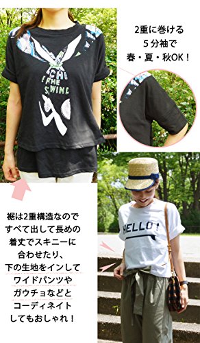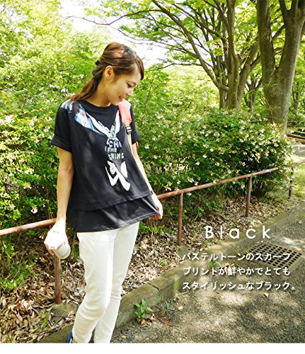 Milk tea 授乳服 マタニティ トップス Milk Tee 「スカーフ柄」 アイボリー重ね着風 サイドスリット 授乳 授乳口付 春 夏 秋