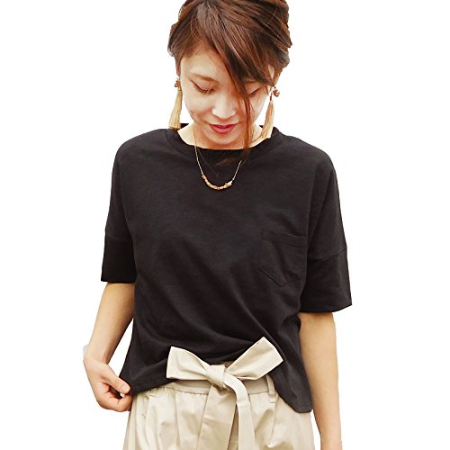 Milk tea マタニティ 授乳服 ベーシック・2wayポケッタブルTee(ブラック) 産前産後 コットン 半袖