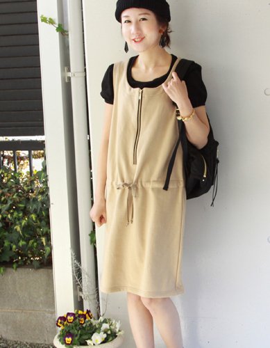 Milk tea マタニティ 授乳服 ワンピース ゴールドジップ・スウェットジャンスカ ベージュ