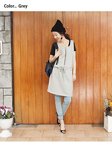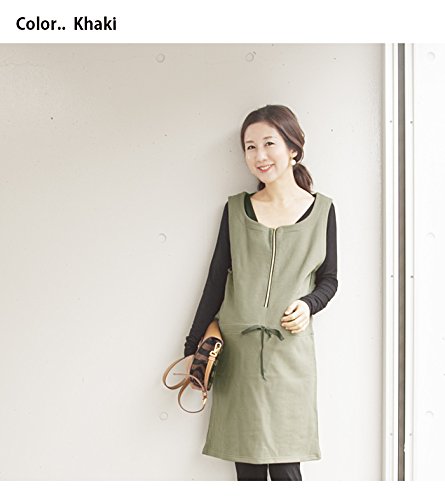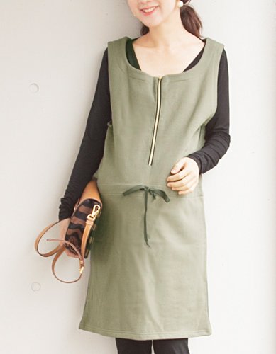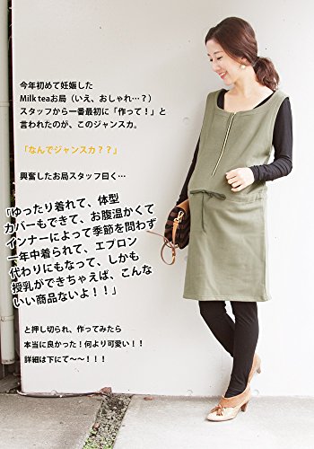 Milk tea マタニティ 授乳服 ワンピース ゴールドジップ・スウェットジャンスカ カーキ
