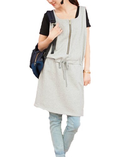 Milk tea マタニティ 授乳服 ワンピース ゴールドジップ・スウェットジャンスカ グレー