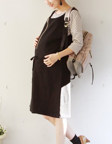 - とても大人可愛い、スウェット生地のジャンスカ。妊娠中から授乳期まで長く着て頂けます。