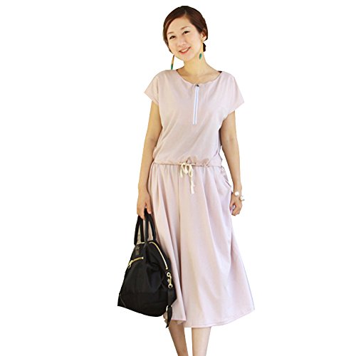 Milk tea マタニティ 授乳服 3wayジャンプスーツ風セットアップ(授乳服トップス&産前産後兼用ガウチョパンツのセット) (ベージュピンク)
