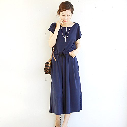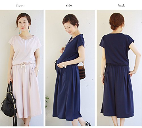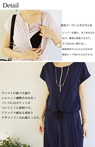 Milk tea マタニティ 授乳服 3wayジャンプスーツ風セットアップ(授乳服トップス&産前産後兼用ガウチョパンツのセット) (ネイビー)