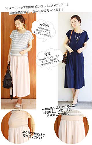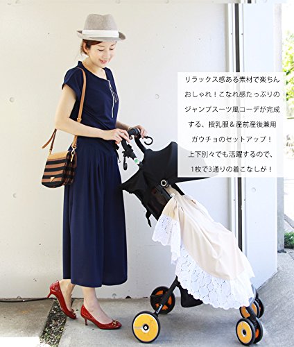 - ジャンプスーツ風のコーディネイトが完成する、授乳服トップスと産前産後兼用のガウチョパンツのセットアップ。お腹楽ちん&かんたん授乳で上下別々でも使える!