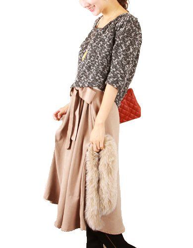 - 【素材】 <ニット> ポリエステル 80% 綿 20% <ワンピース> ポリエステル-100%