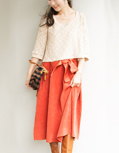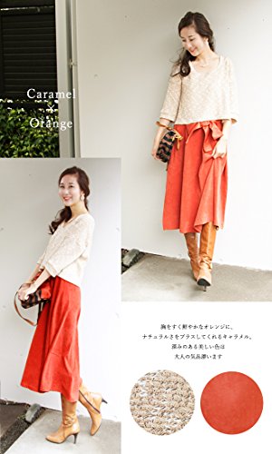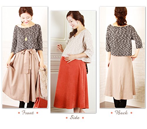 Milk tea マタニティ 授乳服 ワンピース リッチ・スエードタッチ・クレア キャラメル×オレンジ サイドスリット 上下セット ロイヤルコレクション