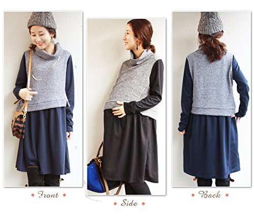 - ニットベストを重ね着しているようなデザインの温かくオシャレな 授乳服 マタニティ ワンピース