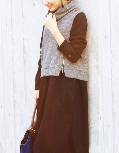 ニットベストを重ね着しているようなデザインの温かくオシャレな 授乳服 マタニティ ワンピース