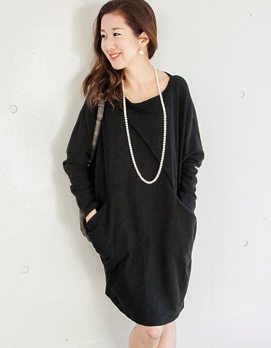 Milk tea マタニティ 授乳服 ワンピース ナチュラルビューティ・ドルマンチュニック ジッパー ブラック