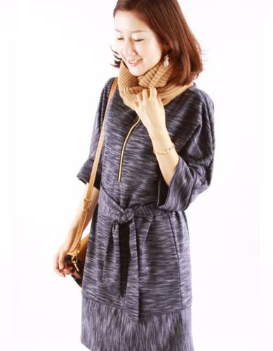 Milk tea マタニティ 授乳服 ワンピース ココ・ミックスデニム ネイビーブルー ジッパータイプ お宮参り お呼ばれ オフィス