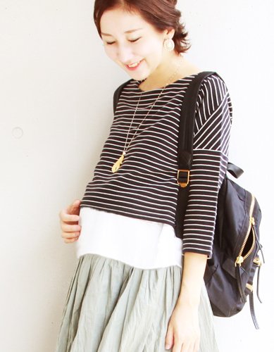 Milk tea マタニティ 授乳服 トップス アリシア・ストライプ ブラック