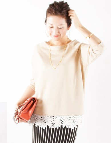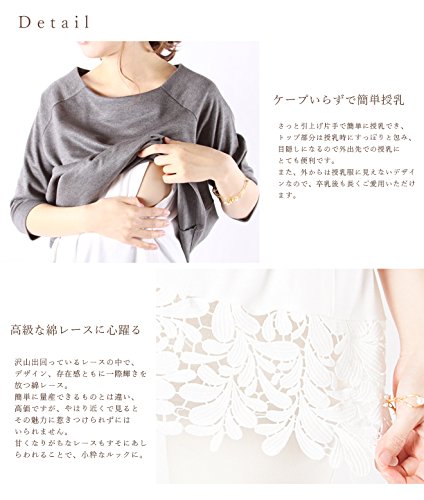 - 高級な綿レースを裾にあしらった、小粋な授乳服兼用マタニティチュニック