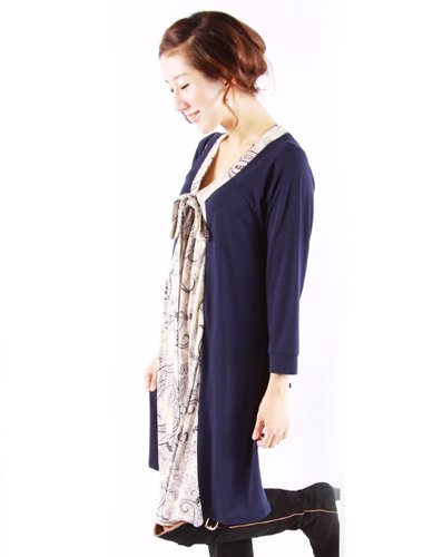 Milk tea 授乳服 マタニティ ワンピース アラベスク(ジッパータイプ) onepiece ネイビー