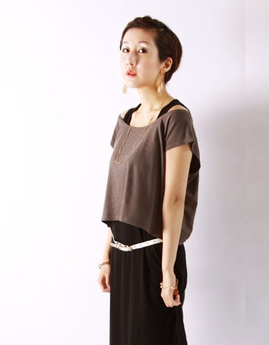 Milk tea 授乳服 マタニティ ワンピース ビューティ・セットアップマキシワンピ モカブラウン×ブラック (ジッパータイプ)