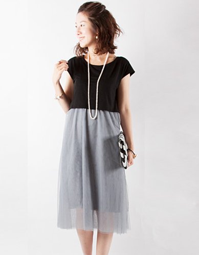 華やかなバレリーナのようなチュールレースを大人っぽいテイストで仕上げた授乳服&マタニティワンピース。