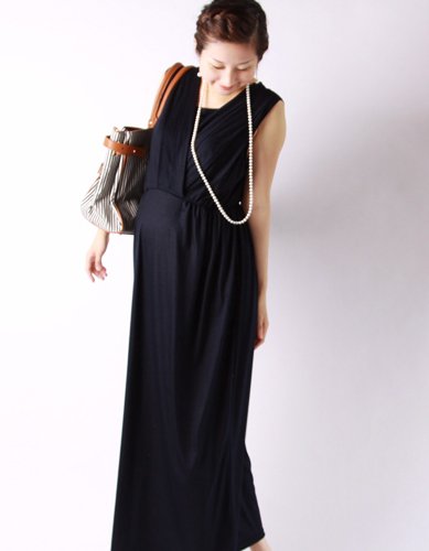 Milk tea 授乳服 マタニティ ワンピース サマー☆マキシワンピ ネイビー あて布 onepiece マタニティ ワンピース