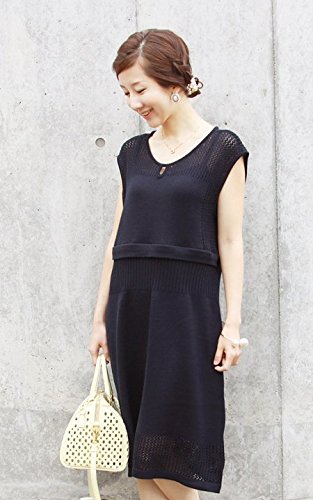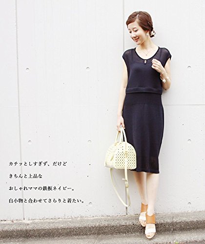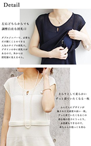 Milk tea 授乳服 マタニティ ワンピース サマーニット・レースドレス ネイビー マタニティワンピース 授乳ワンピース 夏 授乳口付ワンピース 半袖 ノースリーブ ジッパータイプの授乳口 フォーマル ニット お宮参り