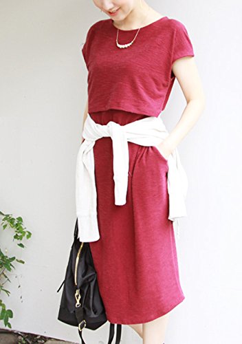 Milk tea 授乳服 マタニティ ワンピース カレン ワイン 授乳 妊婦服 半袖 産前 産後 春 夏 秋 onepiece 授乳口付