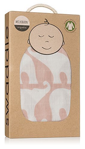 MilkBarn Organic Muslin Swaddle Blanket (Rose Elephant)