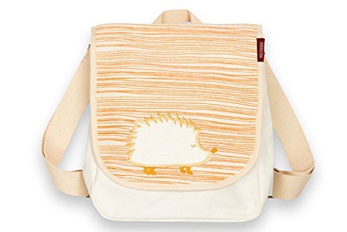 This sweet toddler backpack is made from GOTS certified organic cotton canvas and is cute as can be. Has Hedgehog applique on an orange stripe background for the back flap. So cute!