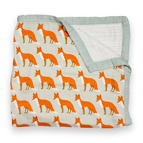 Two layer blanket made with incredibly soft cotton and rayon from bamboo.;measures 36 x 36;Contrasting front and back pattern. Mitred corner binding.;Packaged in a kraft gift box