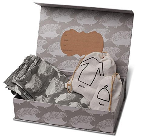 Milkbarn Organic Newborn Gown, Hat and Swaddle Blanket Keepsake Set, Grey Hedgehog by MilkBarn