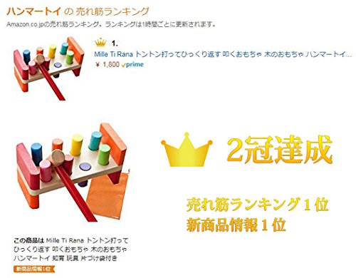 Mille Ti Rana トントン打ってひっくり返す 叩くおもちゃ 木のおもちゃ ハンマートイ 知育 玩具 (片づけ袋付き)