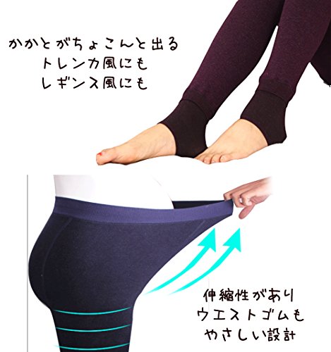 - 12分丈のレギンスは、かかとまで覆えるので、レギンスにもトレンカ風にもなります。ウエストゴムもゆったりとしているので、圧迫しない優しい設計。