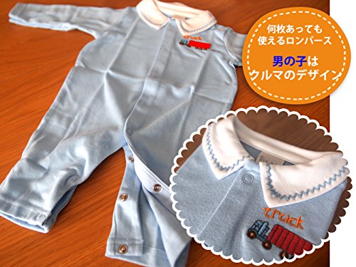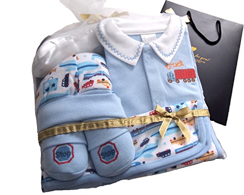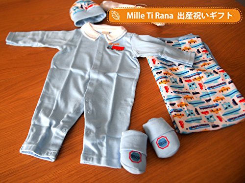 Mille Ti Rana 出産祝い ベビー ギフト ロンパース ベビーソックス ベビー帽子 おくるみ ハンガー 5点 ギフトバッグ セット (水色 男の子)